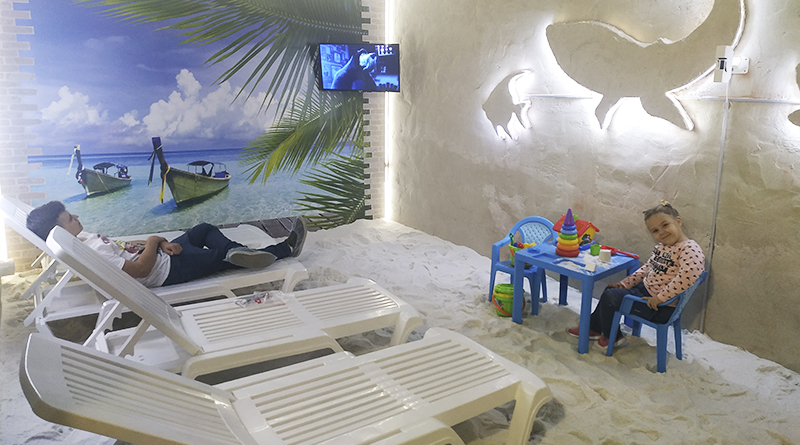 – В период всплеска инфекционных заболеваний посещение соляной комнаты поможет поправить здоровье жителям и гостям агрогородка. Сделана она на совесть. Слои морской соли на всех поверхностях комнаты наращивались по соответствующим технологиям. Для отдыха взрослых в соляной комнате установлены шезлонги, для детей оборудованы уголки для игр, работает телевизор. При желании можно посмотреть мультфильмы, послушать успокаивающую музыку, – рассказывает заместитель директора по идеологической работе и оздоровительно-бытовой службе Раиса Сныткова.