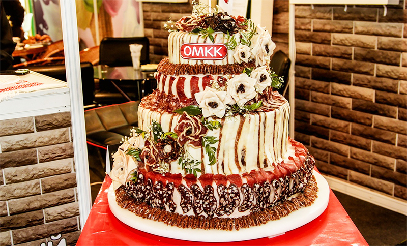 Настоящим украшением стенда комбината стал торт из мясной продукции собственного производства. Он не остался без внимания посетителей выставки. Представители предприятия предлагали продегустировать представленные новинки, а также другие мясные деликатесы.