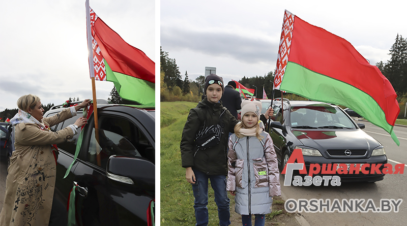 В субботу оршанцы приняли активное участие в республиканском автопробеге «За единую Беларусь!», который стартовал из Минска, а финишировал в Витебске. Колонна двигалась через Борисов, Крупки, Александрию, а после обеда прибыла в Оршу. Здесь к участникам акции присоединились десятки авто с государственными флагами, которые проехали по центральным улицам города.