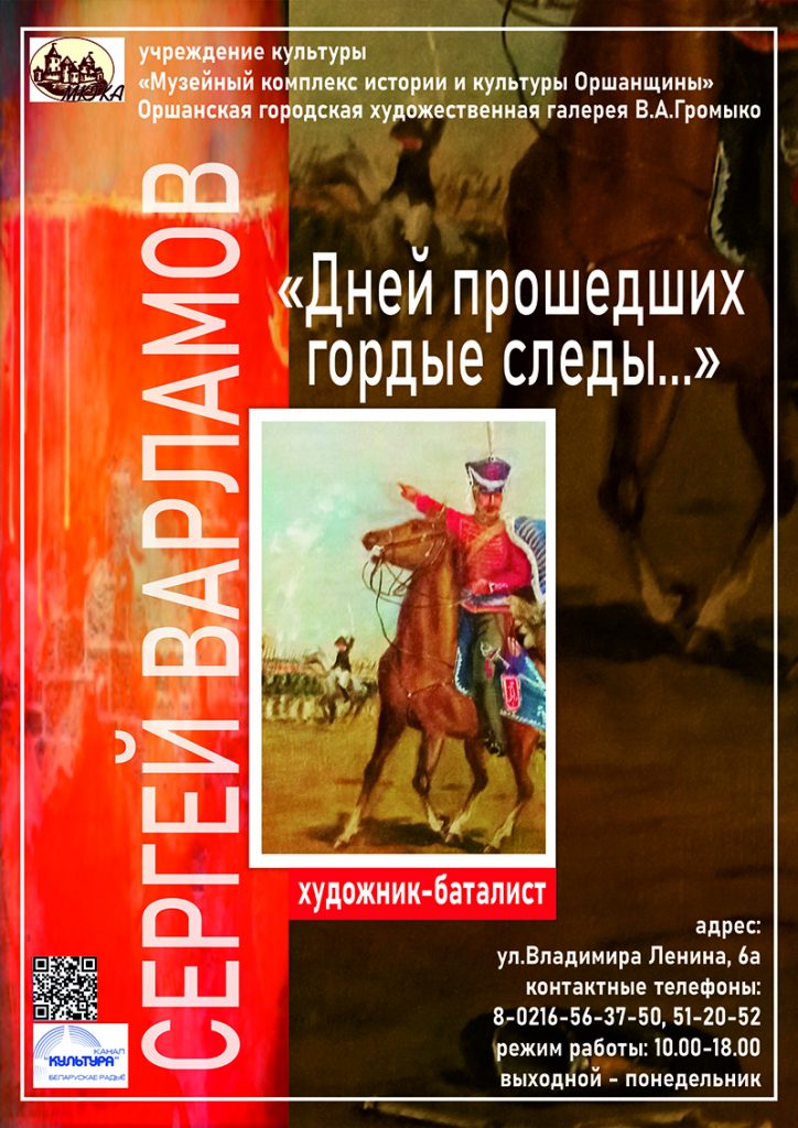 С 16 октября 2020 года в Оршанской городской художественной галерее В. А. Громыко работает персональная выставка «Дней прошедших гордые следы…» художника-баталиста из Крупок Сергея Варламова.