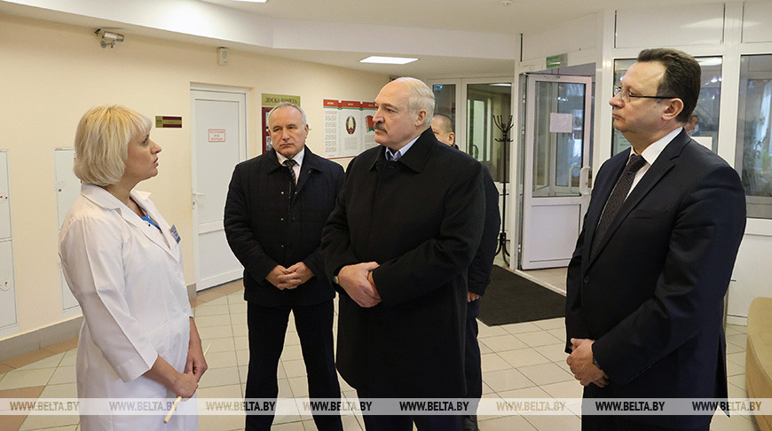 Прилетев в Витебск, глава государства направился в Витебский областной клинический родильный дом. Здесь ему доложили о деятельности этого учреждения здравоохранения и его работе в условиях COVID-19.