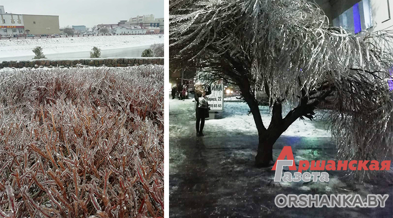 Вчерашняя погода с дождем и обледенением на дорогах доставила немало хлопот всем службам Оршанского района, а также его жителям. Из-за налипания наледи без света остались населенные пункты, дорожное движение затрудняли поваленные деревья.