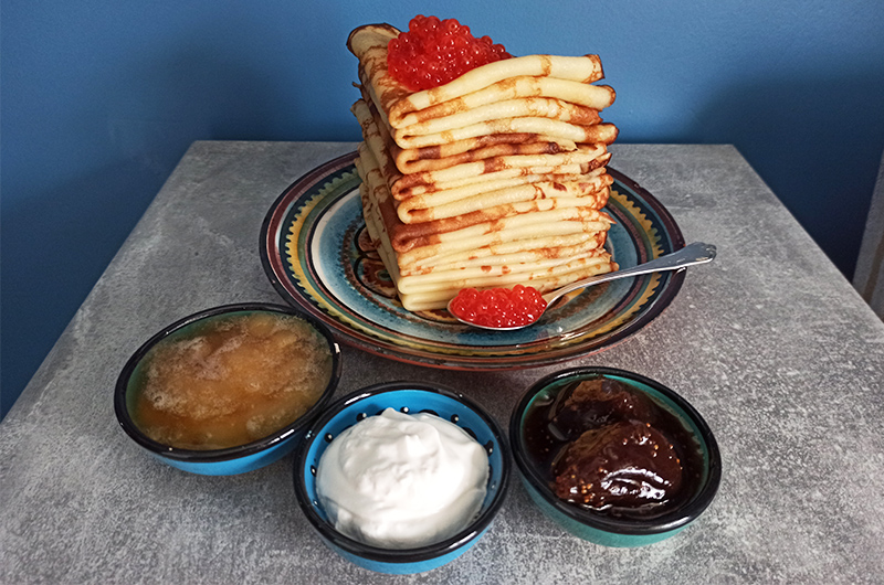 Готовые блины подавайте со сметаной, творогом, вареньем, свежими фруктами, медом или по вашему вкусу.