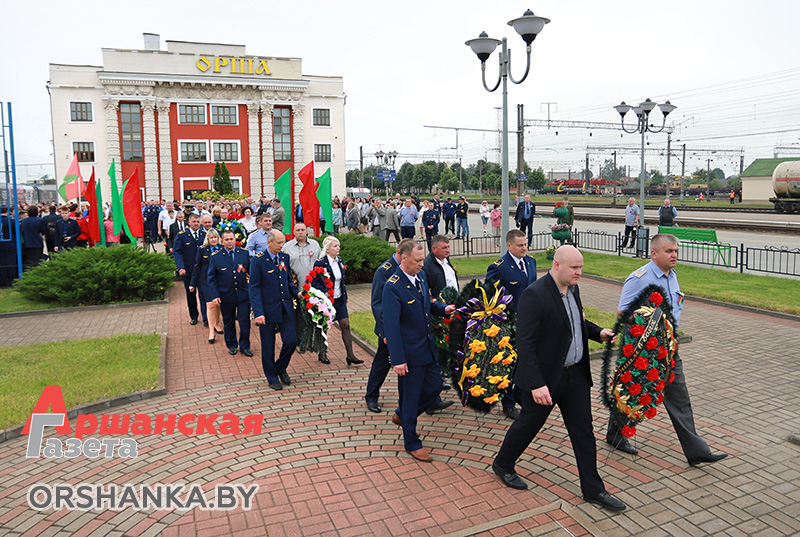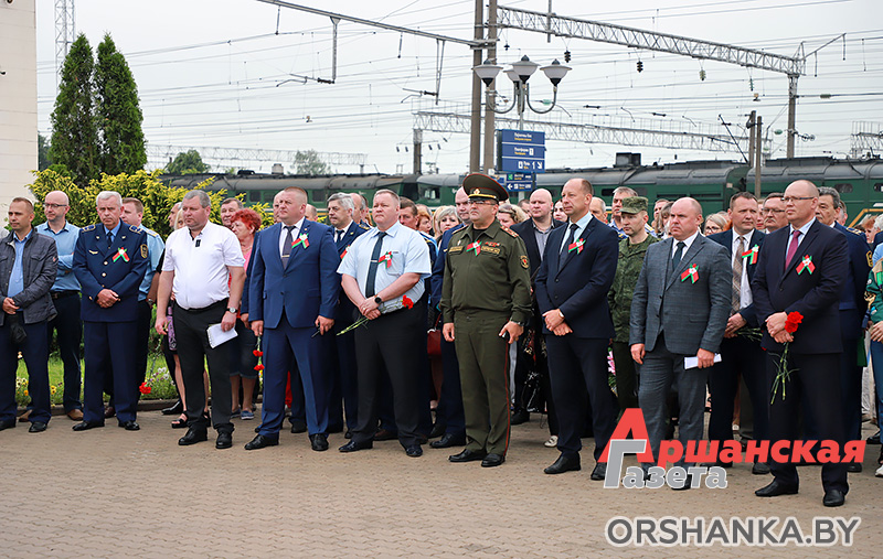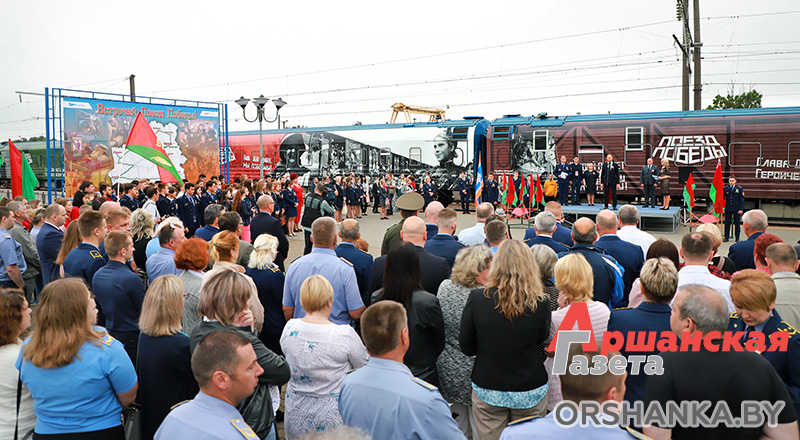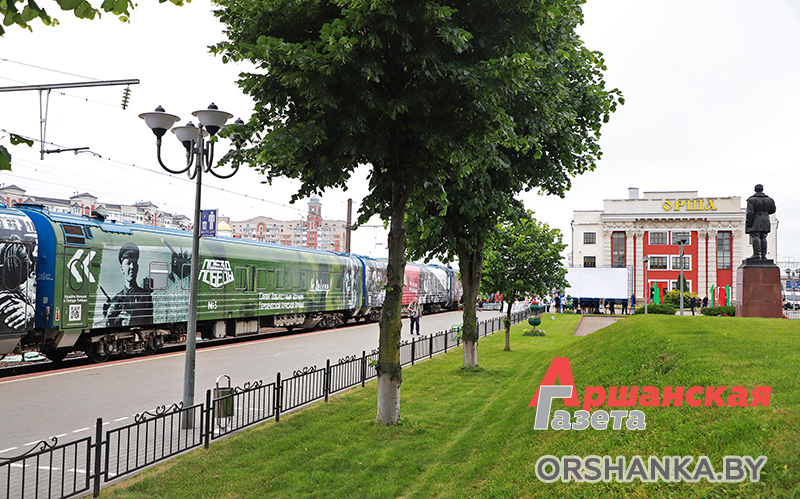 Сегодня в Оршу прибыл «Поезд Победы». На вокзальной площади станции Орша, у памятника Герою Советского Союза К. С. Заслонову состоялся торжественный митинг, посвященный открытию уникальной экспозиции.