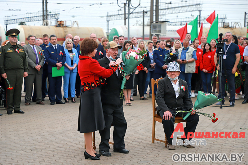 В нем приняли участие начальник Минского отделения Белорусской железной дороги Александр Хорошевич, первый заместитель председателя Оршанского райисполкома Сергей Пац, организаторы проекта, другие почетные гости, ветераны Ефим Емельянович Брезгунов, Николай Петрович Давыдько, представители трудовых коллективов региона, молодежь.
