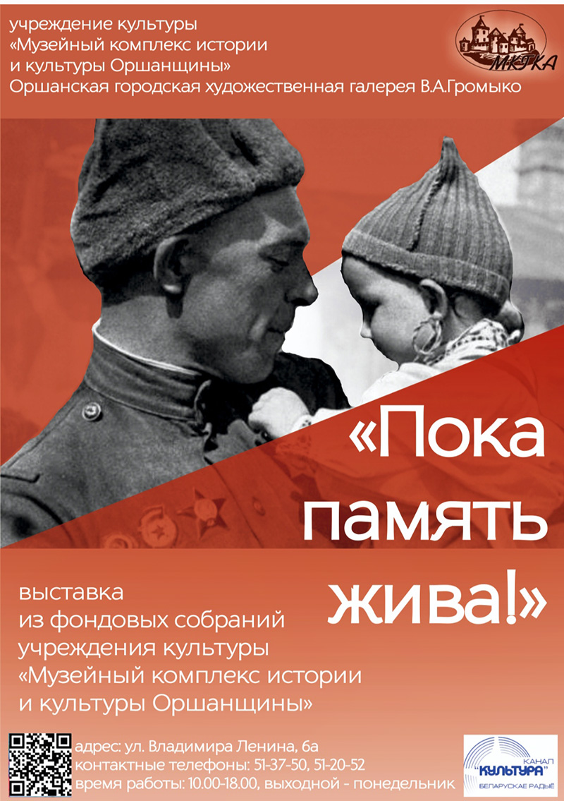 В Оршанской городской художественной галерее В. А. Громыко состоялось открытие выставки «Пока память жива!», посвященной 77-й годовщине освобождения города Орши от немецко-фашистских захватчиков. Открытие проходило в рамках традиционной патриотической акции «Память сердца».