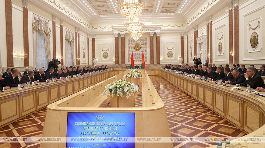 «Избирательная кампания прошлого года и последовавшая за ней санкционная травля Беларуси наглядно показали, что наша внешнеполитическая стратегия нуждается в серьезной корректировке. Мы должны четко понимать, что происходит вокруг нас, каково наше место в этой стремительно меняющейся системе координат, насколько мы способны быстро и профессионально адаптироваться, отвечая на современные вызовы и угрозы», — подчеркнул глава государства.