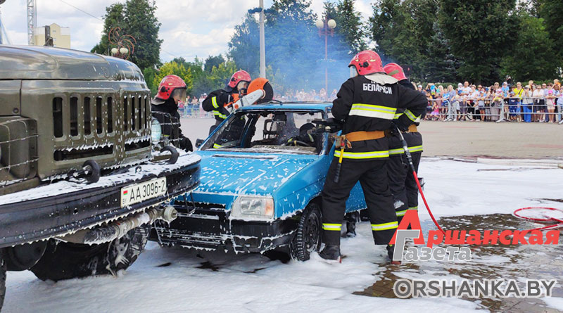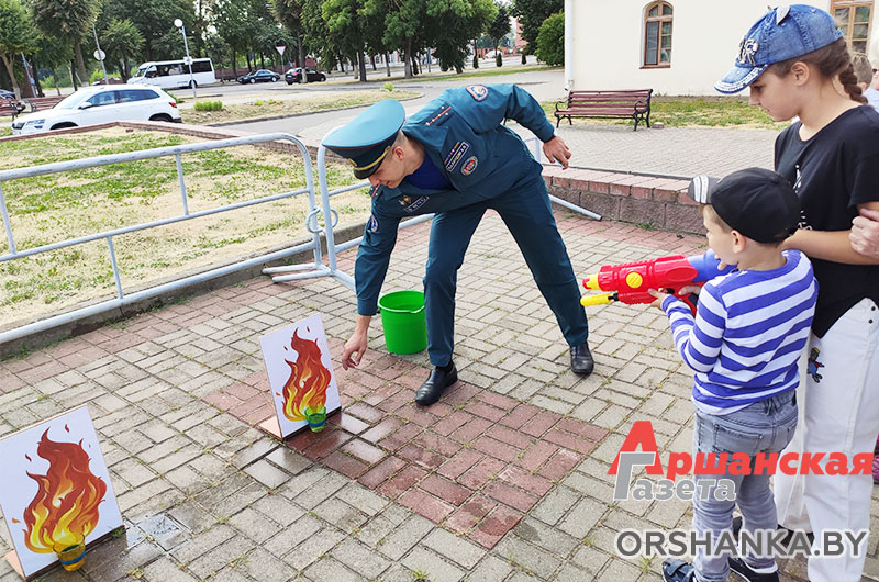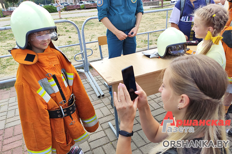 Каждый желающий мог примерить форму пожарных, попытаться развернуть конфету в крагах (перчатках, которые надевают спасатели на пожаре). Юные оршанцы пробовали тушить импровизированные пожары. На игровых площадках взрослым и детям предлагали вспомнить правила безопасности и получить за это жетоны, которые можно было обменять на различные подарки, а также возможность подняться в воздух с помощью альпинистского снаряжения или посетить дымокамеру.