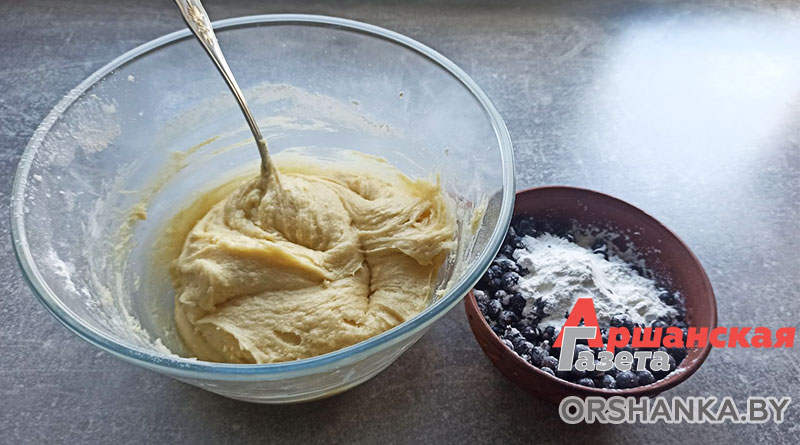 К сливочному маслу добавляем сахар, ваниль, соль и взбиваем миксером до однородной массы. Отдельно взбиваем три яйца и аккуратно вливаем в масляную смесь, взбиваем пару минут. Соединяем с просеянной мукой и разрыхлителем, аккуратно перемешиваем. Моем ягоды, просушиваем, посыпаем кукурузным крахмалом, чтобы каждая ягодка была в нем. Пересыпаем к тесту и перемешиваем лопаткой.