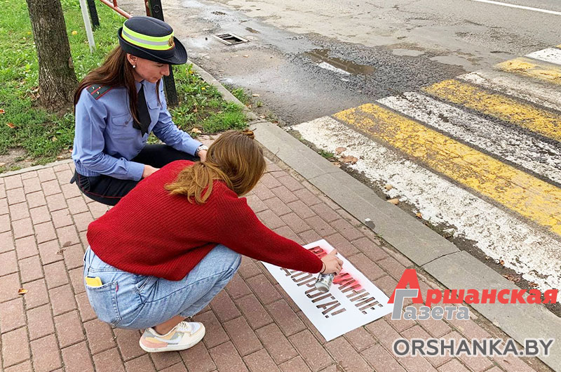 В преддверии нового учебного года оршанские автоинспекторы совместно с волонтерами провели акцию «Дорожные шпаргалки». Вблизи пешеходных переходов они нанесли специальной краской предупреждающие надписи.