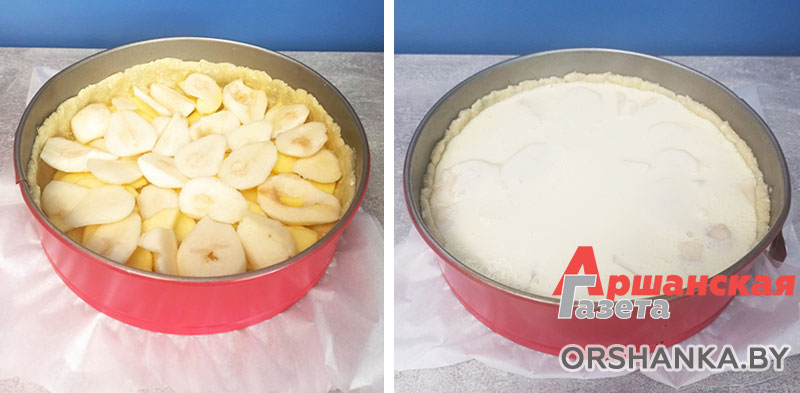 Пирог с яблоками и грушами со сметанной заливкой