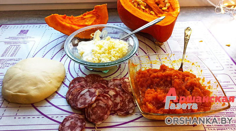 Лепешка с тыквенной начинкой и колбасой