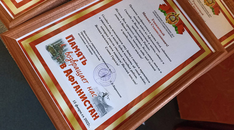 Начальник управления вручил воинам-интернационалистам благодарности, а также ценные подарки. Сергей Сарамуд был награжден медалью «Ветеран 345 гвардейского отдельного парашютно-десантного полка».