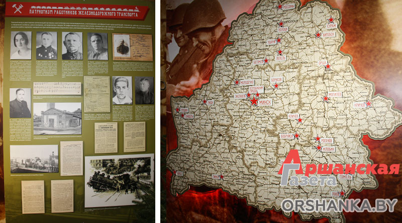 Она состоит из 5 разделов, каждый из которых рассказывает о первых днях войны на территории Беларуси, партизанском движении, юных защитниках Родины, патриотизме работников железнодорожного транспорта и роли военных фотокорреспондентов в отображении истории войны в кадрах кинолент и фотографиях. Благодаря специальной мультимедийной программе посетители могут познакомиться с уникальными экспонатами, которых нет в постоянной экспозиции. За каждой из этих вещей – история жизни и подвига героев Беларуси, защищавших свою страну.