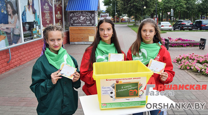 Союзная молодежь Оршанщины в рамках акции «В школу с добрым сердцем!» организовывала сборы школьной одежды и обуви, канцелярских принадлежностей, учебных пособий, спортивных товаров и других вещей, необходимых детям из малоимущих семей к предстоящему учебному году.