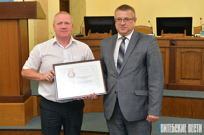 Нагрудным знаком Министерства архитектуры и строительства «Ганаровы будаўнік» награждены начальник управления ДКУП «Госстройэкспертиза по Витебской области» Николай Ковалев и ведущий инженер отдела ОАО «Строительный трест №9 г.Витебск» Валентина Климова. Почетной грамотой министерства отмечены успехи заместителя генерального директора – главного инженера ОАО «Строительно-монтажный трест №16 г.Новополоцк» Александра Сафронова, заместителя директора-главного инженера КУП «Институт Витебсксельстройпроект» Дмитрия Пшонко, директра ДКУП «УКС Оршанского района» Александра Прищепова, начальника технического контроля и центральной лаборатории ОАО «Керамика» Тамары Шкодиной, прораба филиала «СМП №169 на станции Витебск» ОАО «Дорстроймонтаж» Кирилла Пахомчика.