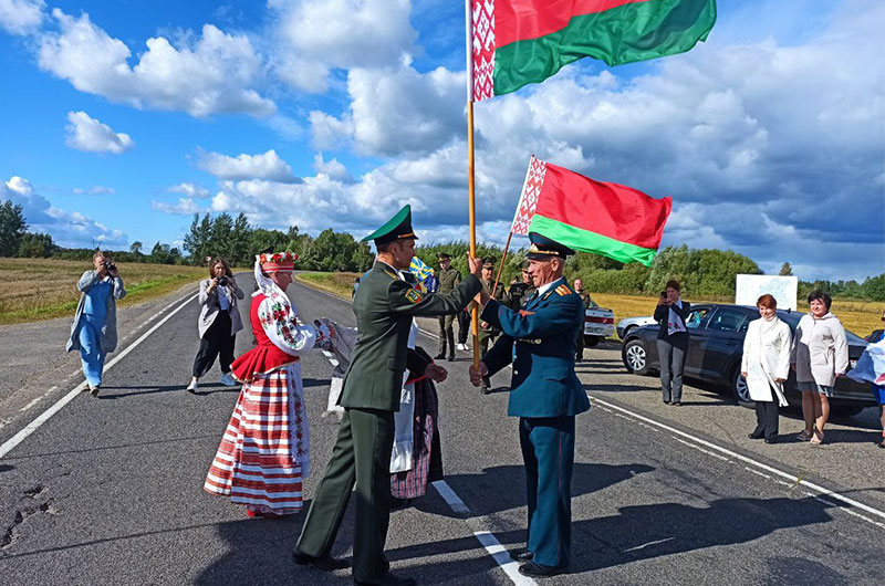 Участники автопробега передали Государственный флаг и рушник представителям Браславского района. В каждом районе Витебщины честь пронести Государственный флаг и традиционный рушник региона, а затем передать эстафету соседям, будет предоставлена людям, проявившим себя в разных сферах деятельности.