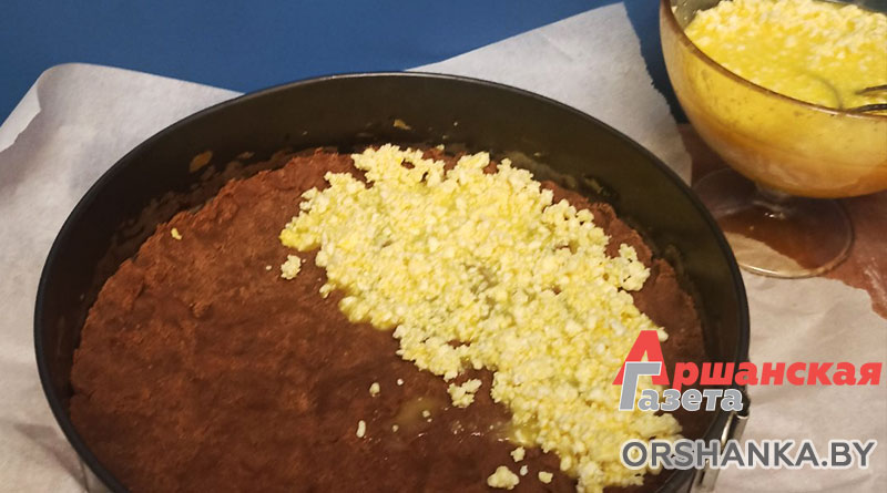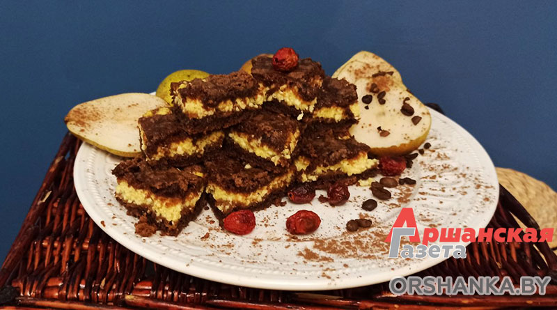 Одну часть теста распределяем в форме для запекания, сверху равномерно кладем творожную начинку. Вторую часть теста трем на крупной терке и посыпаем начинку. Ставим в духовку при температуре 200 градусов на 35-40 минут (ориентируйтесь на свою духовку). Вынимаем, нарезаем на красивые кусочки. Перед подачей охладите печенье в холодильнике.