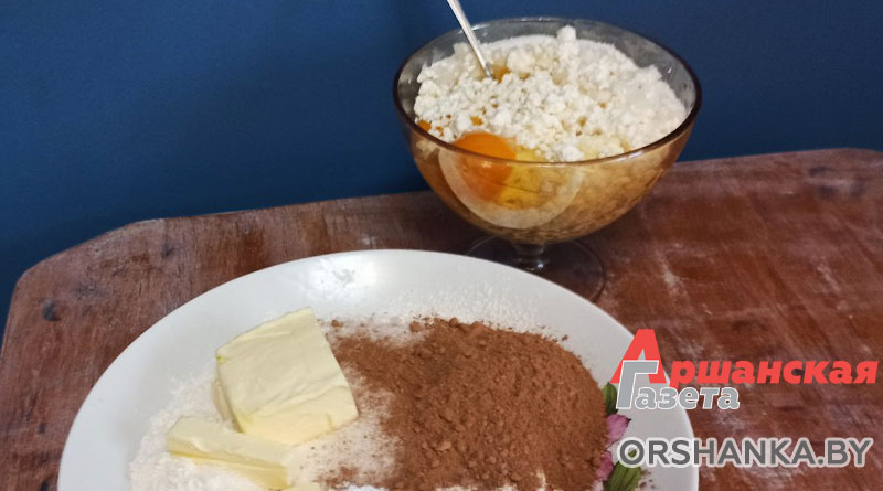 Для приготовления теста нам понадобится: 3 ст. просеянной муки, 1 ст. сахара, 200 г сливочного масла, 1 ч. л. разрыхлителя, 3 ст. л. какао.