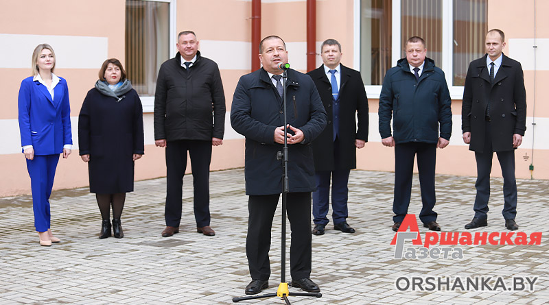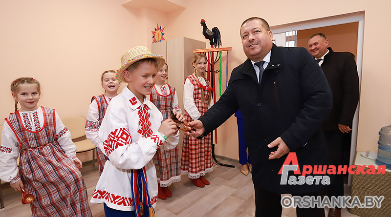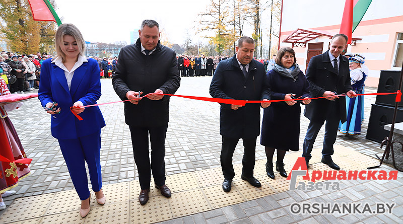 В торжественной обстановке символичную красную ленточку перерезали помощник Президента Республики Беларусь – инспектор по Витебской области Анатолий Линевич, председатель Оршанского райисполкома Игорь Исаченко, депутат Палаты представителей Национального собрания Республики Беларусь Инна Крачек, первый заместитель генерального директора Оршанского стройтреста № 18 Алексей Витеорец и директор учреждения культуры Яна Бегиашвили.