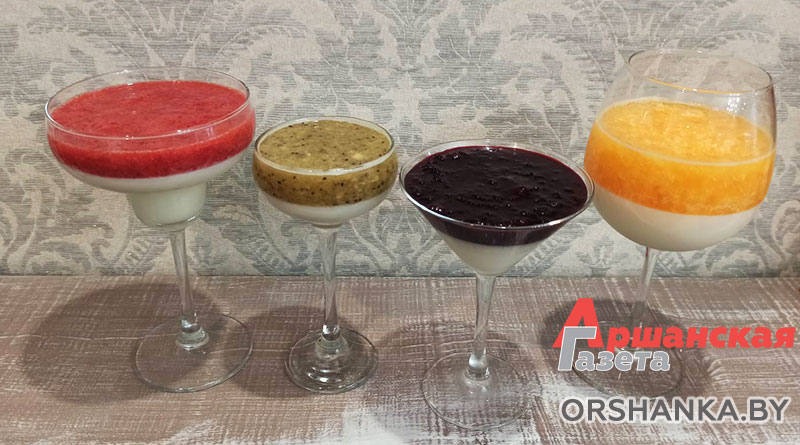 Сначала готовим сливочный слой. Заливаем водой желатин до полного разбухания. Молоко доводим до кипения, остужаем. В теплом молоке разбавляем желатин, добавляем ванилин. Разливаем по порционным бокалам. Ставим в холодильник до полного застывания желейной массы.