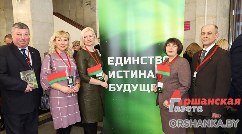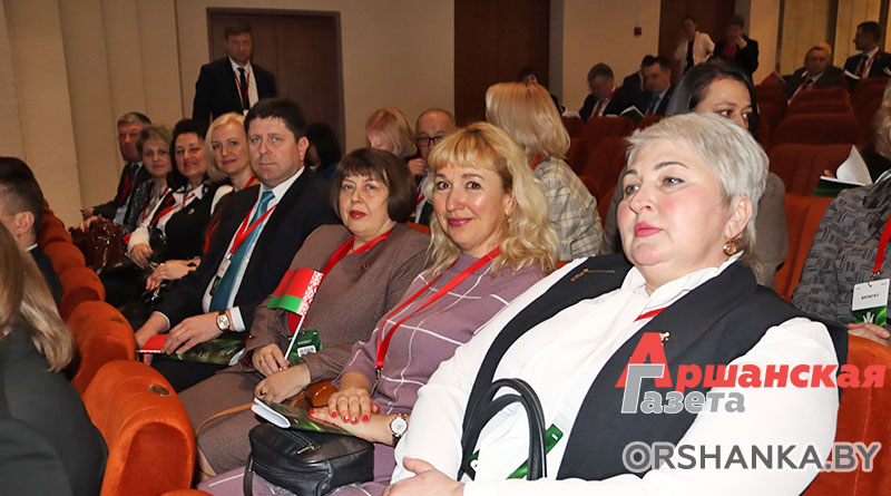 Десять делегатов представили Оршанский регион. Это депутат Палаты представителей Национального собрания Республики Беларусь Инна Крачек, заместитель заведующего городской больницы № 1 имени Семашко УЗ «ОЦП» Юлия Ивко, заведующий государственным учреждением «Оршанский районный учебно-методический кабинет», председатель Оршанской районной организации общественного объединения «Белорусский союз женщин» Жанна Радевич, директор средней школы № 4 г. Орши Ирина Афицерова, главный специалист отдела идеологической работы и по делам молодежи Оршанского районного исполнительного комитета, председатель правления Оршанской районной организации общественного объединения «Белорусский фонд мира» Игорь Шарай, главный редактор «Аршанскай газеты» Анастасия Турок, председатель Оршанского районного объединения профсоюзов Оксана Пустошило, директор УО «Оршанский государственный медицинский колледж» Юрий Степанов, заместитель начальника отдела бухгалтерского учета локомотивного депо им. К. С. Заслонова Минского отделения Белорусской железной дороги Эдуард Евменов, заместитель генерального директора по организационно-кадровой, идеологической работе и режиму ОАО «Оршанский мясоконсервный комбинат» Нина Карпалова.