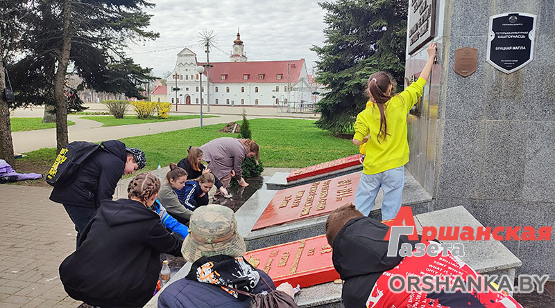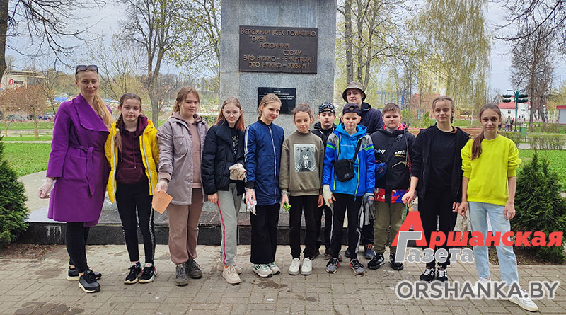 Так, у братской могилы Советским воинам, расположенной в городском парке Орши, работали учащиеся 6 «В» класса гимназии № 2 вместе с классным руководителем Татьяной Полховской.