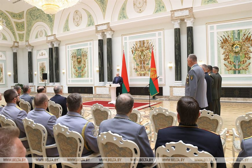 «Мы с вами практически традиционно встречаемся в преддверии праздничных мероприятий, посвященных главному нашему празднику Дню Независимости. Сегодня вручаем генеральские погоны. К ним прилагается высочайшая ответственность за судьбу страны, за мир на нашей земле и безопасность белорусского народа. Современным белорусам посчастливилось родиться и жить под чистым небом. Но мы с вами, как люди военные, хорошо знаем, что жизнь без войны — это результат кропотливой ежедневной работы», — подчеркнул Александр Лукашенко.