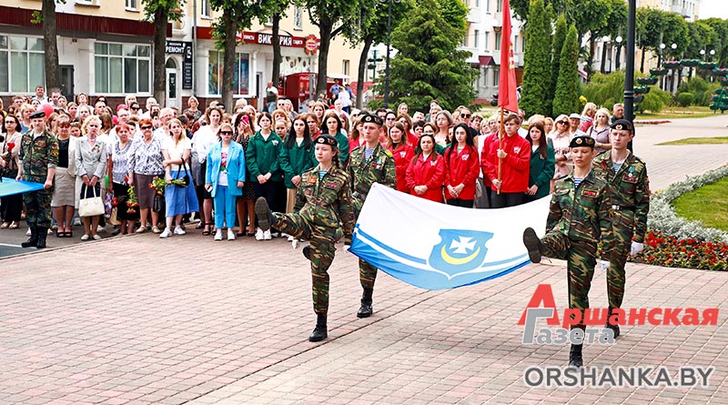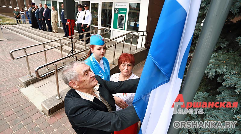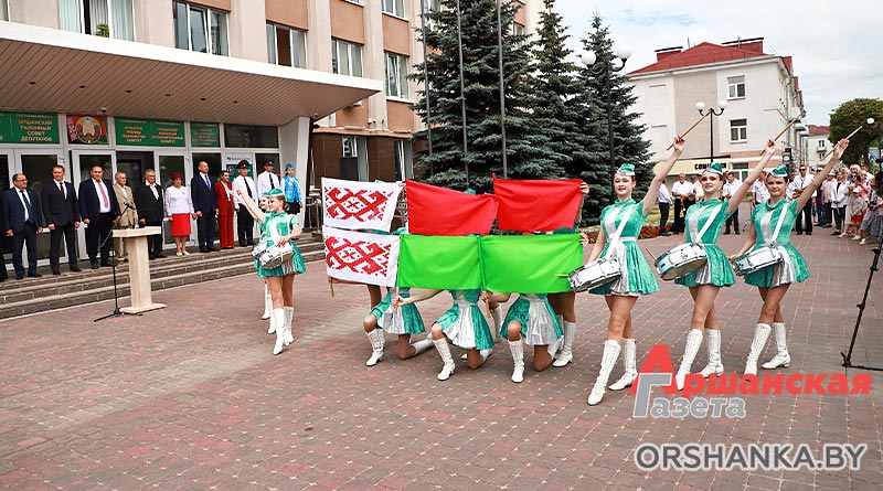 По давней традиции, у здания Оршанского райисполкома состоялась торжественная церемония поднятия флага города с участием руководства региона, трудовых коллективов, общественности, молодежи.