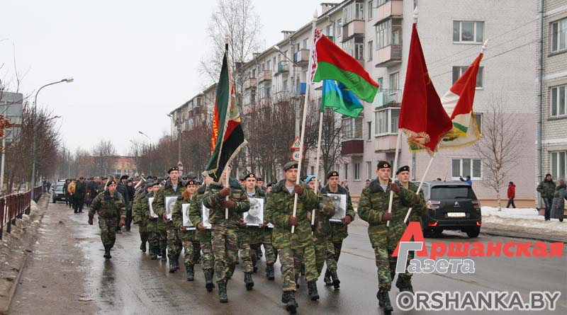 Read moreВоспитанники военно-патриотического клуба ЮНЕСКО «Русичи» несут флаги и портреты оршанцев, погибших в Афганистане.