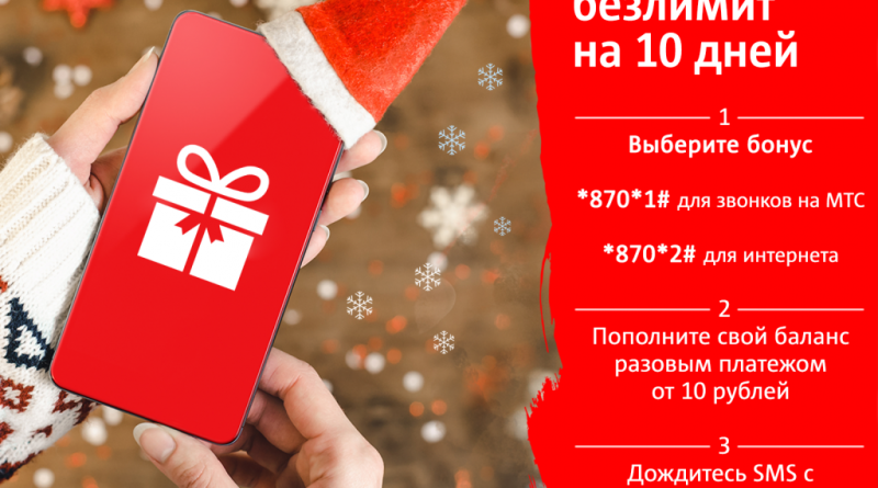 Read moreВ последние дни года МТС предлагает запастись безлимитом минут и интернета для поздравлений с наступающими праздниками. Пополнив свой счет разовым