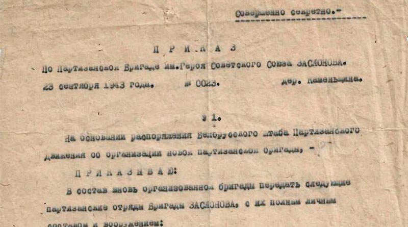 Read moreНа фото: приказ по партизанской бригаде имени К. С. Заслонова от 23 сентября 1943 года