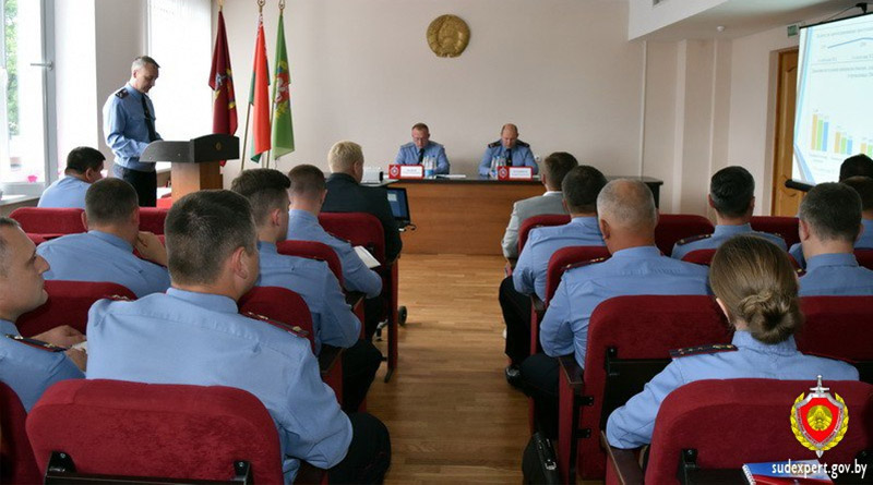 С докладами по направлениям служебной деятельности выступили заместители начальника управления Государственнного комитета по Витебской области полковник юстиции Леонид Горолевич и главный государственный судебно-медицинский эксперт по Витебской области Дмитрий Рябов, начальник отдела кадров и идеологической работы подполковник юстиции Виталий Хоняк.