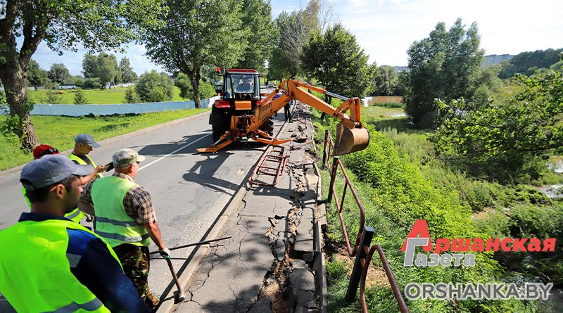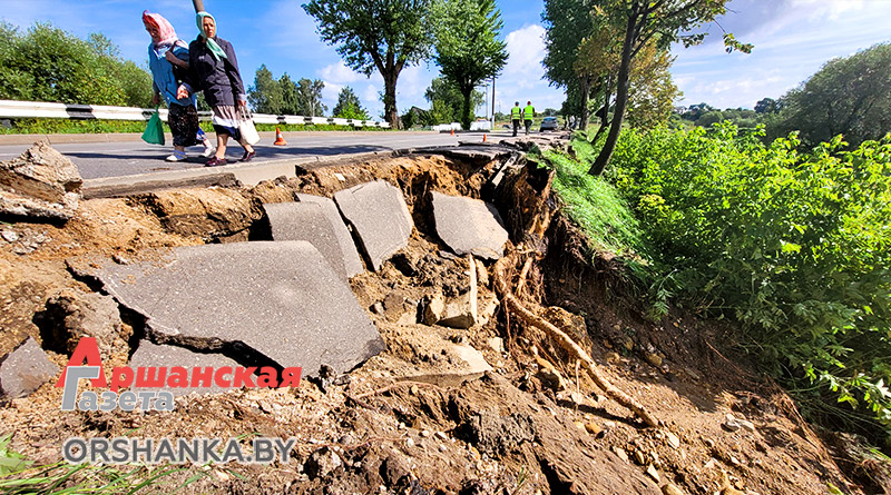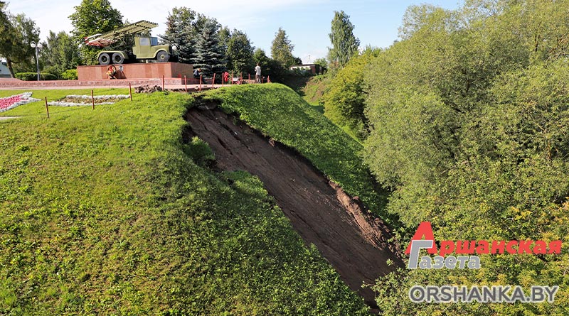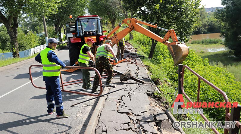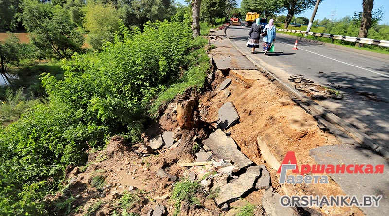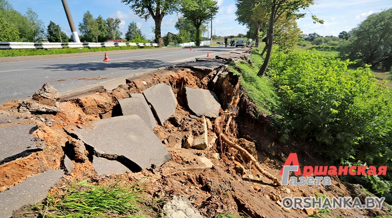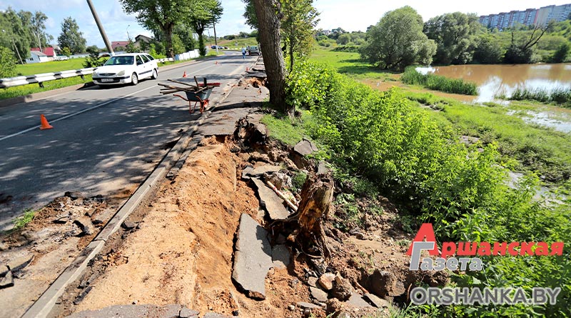 На четырех участках произошло размытие грунта: возле музея «Млын» по ул. Замковой, на склоне возле мемориального комплекса «Катюша» по ул. Могилёвской, участка тротуарной дорожки по ул. Ф. Скорины в районе р. Кутеинка, на пересечении ул. 1 Мая и ул. Максима Богдановича и откоса дороги на мост через реку Оршицу в районе Грязиловки – населенного пункта Ерошевичи. Сейчас работниками спецавтобазы ведутся восстановительные работы.