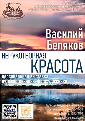 25 августа 2023 года в Оршанской городской художественной галерее В. А. Громыко состоится торжественное открытие персональной выставки путешественника-фотохудожника Василия Белякова «Нерукотворная красота» (г.Поставы, Республика Беларусь).