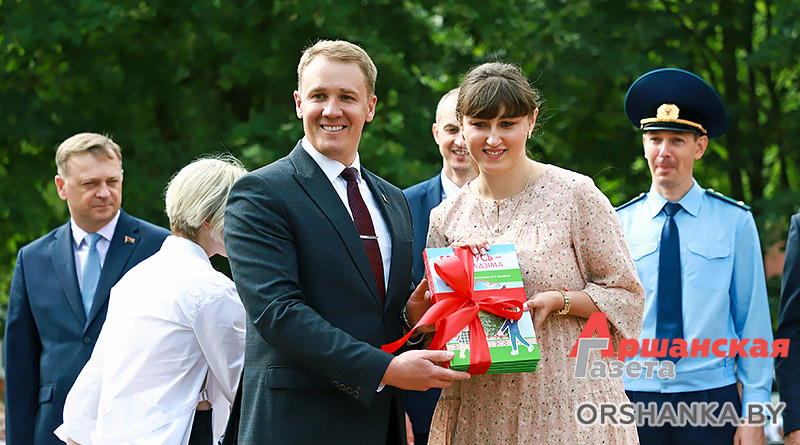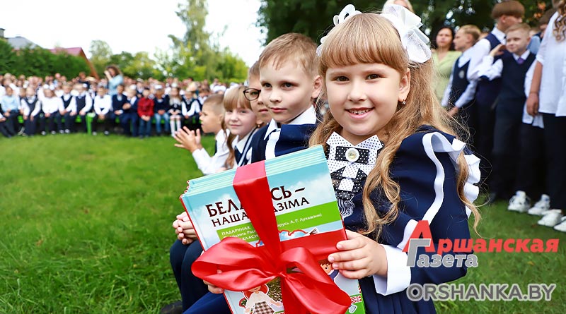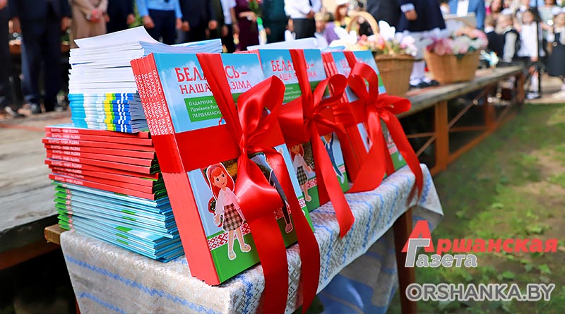 А первоклашкам председатель райисполкома Игорь Мороз вручил подарок от Президента Республики Беларусь А. Г. Лукашенко – книгу «Беларусь – наша Радзіма”, от Оршанского районного исполнительного комитета – книгу местных авторов Галины и Сергея Трафимовых “Букварь Оршанский”.