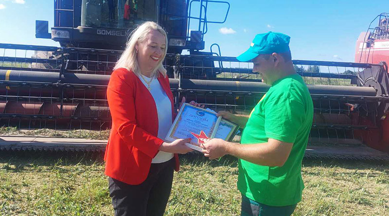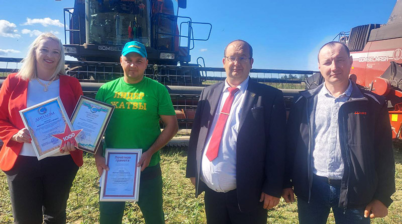 В период уборочной кампании Максима Сернова ежегодно отмечают в числе лучших. С новой победой от имени «Гомсельмаша» его поздравил представитель торговый по Республике Беларусь Дмитрий Разуванов, диплом и премию лидеру жатвы вручила председатель районного профсоюза работников АПК Ольга Никитенкова.