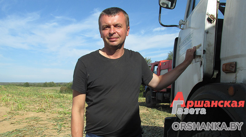 Рядом с комбайнерами работают водители Алексей Шакуро, Андрей Малявко и Геннадий Моисеенко, которые на многотонных грузовиках отвозят силос к животноводческому комплексу для укладки на длительное хранение. Путь у них недлинный: 2 км туда и 2 км обратно. Каждый стремится работать без простоев. На трамбовке силосной массы работает Михаил Клименков.