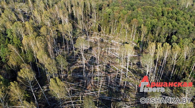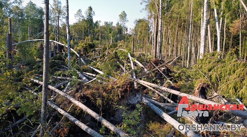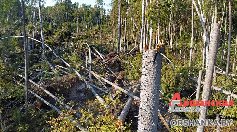 На Витебщине продолжают ликвидировать последствия сильного ветра, бушевавшего 6-7 августа в этом году. Больше других пострадали территории Оршанского лесхоза. Так, в Дубровенском районе большой удар стихии пришелся на Осинторфское лесничество, где ураганный ветер выкорчевывал и ломал деревья.
