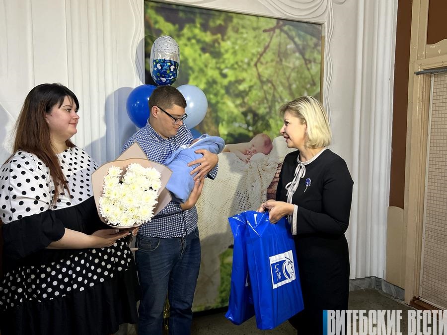 Поздравить молодых родителей поспешила председатель Витебской областной организации Белорусского союза женщин Марина Новицкая: