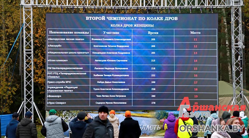 «Колка дров» среди мужчин и женщин, «Переруб бревна топором», новое и самое сложное состязание «Колка дров по-Президентски», «Эстафета» – журналисты «Аршанкi» участвовали во всех конкурсах. Нашу команду активно поддерживали и болельщики, что было очень приятно.