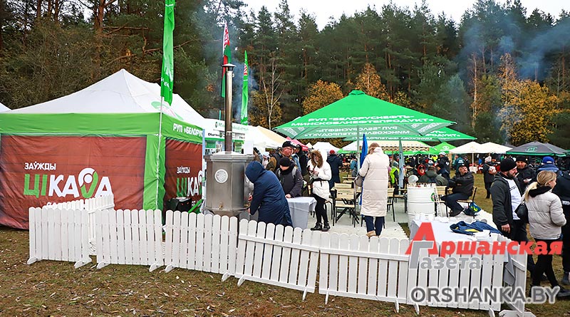 Параллельно на площадке проводилась программа для зрителей. Они смогли не только перекусить и выпить горячий чай, но и поучаствовать в соревнованиях по сборке деревянных фигур, состязании по перетягиванию саней и игре в городки. Также была организована выставка-продажа лесхозов Минской области. В палатках можно было приобрести различные сувениры, продукцию пчеловодства, изделия из дерева и т. д.