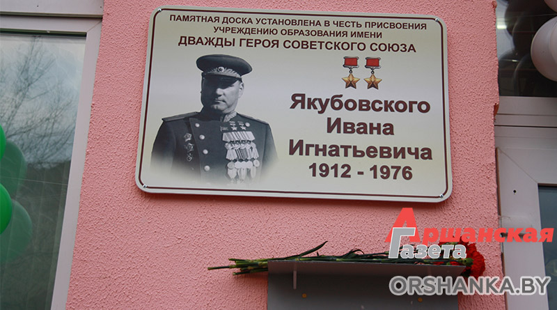 В средней школе № 13 г. Орши состоялось торжественное мероприятие, посвященное присвоению учреждению образования имени дважды Героя Советского Союза, Маршала Советского Союза Ивана Игнатьевича Якубовского, а также открытию в его честь мемориальной доски.