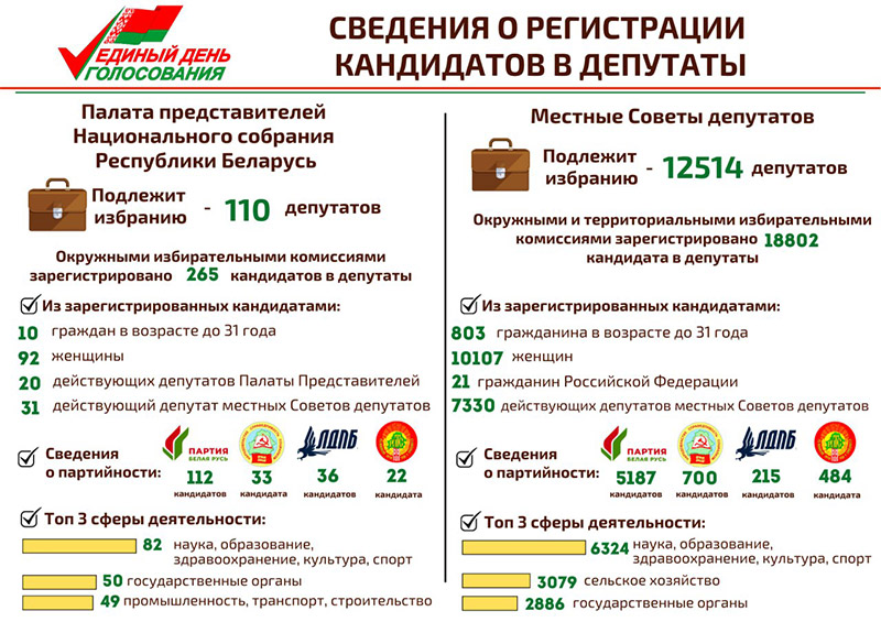 На 110 депутатских мест в Палате представителей будут претендовать 265 кандидатов в депутаты, передает telegram-канал «ЦИК Беларуси».