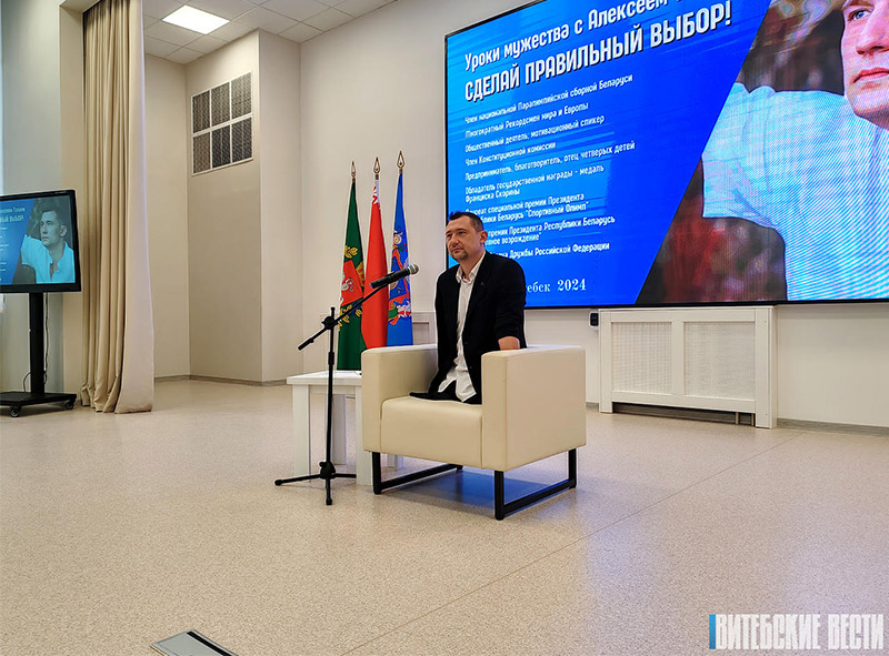 В актовом зале областного института развития образования в Витебске прошла встреча белорусского спикера-мотиватора, учредителя благотворительного фонда, паралимпийца Алексея Талая с жителями города, педагогами и учащимися. Он провел тренинг «Уроки мужества с Алексеем Талаем. Сделай правильный выбор», рассказал о своей непростой борьбе с жизненными обстоятельствами, ответил на вопросы присутствовавших. Также участники мероприятия могли присоединиться к акции по сбору монет, которые будут переданы для изготовления памятного знака «Живая память благодарных поколений».