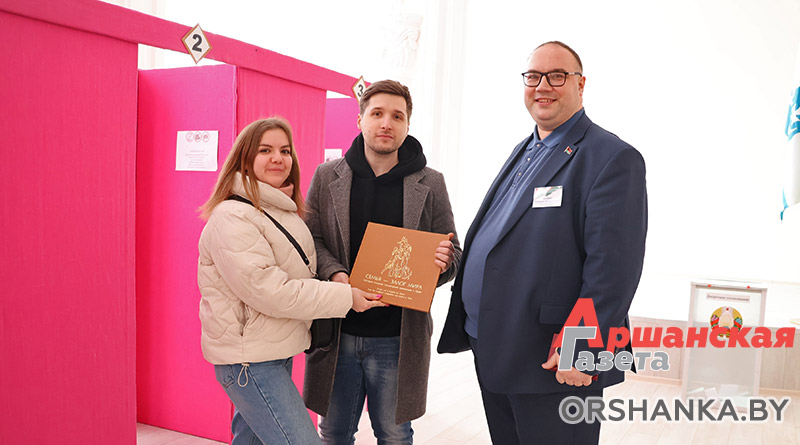 После того, как молодые люди проголосовали, им вручили книгу об истории создания скульптурной композиции в Орше «Семья – залог мира».