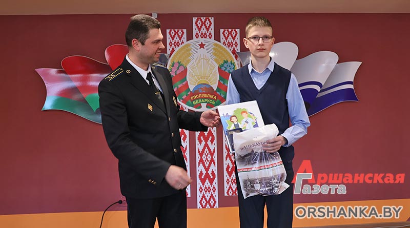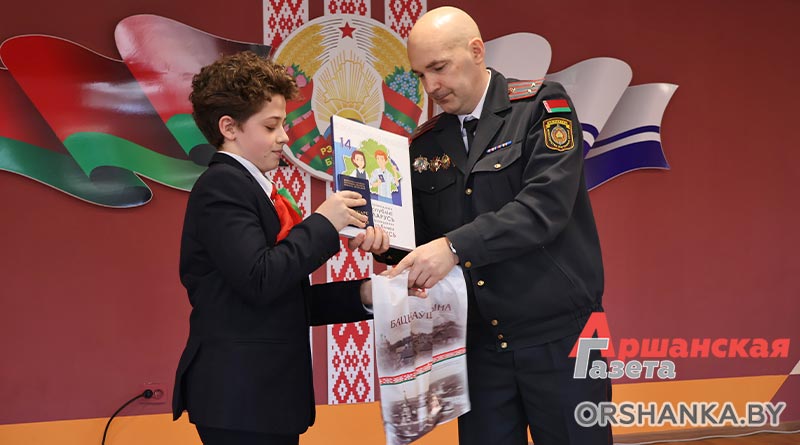 С этим важным событием ребят поздравили председатель Оршанского районного Совета депутатов Инна Хомутовская, заместитель начальника главного управления юстиции Витебского облисполкома, начальник управления принудительного исполнения Никита Рязяпов, прокурор Оршанского района старший советник юстиции Анатолий Авсюк, начальник Оршанского межрайонного отдела ГКСЭ полковник юстиции Александр Юрасов и его заместитель Дмитрий Ермаков, начальник отдела идеологической работы и по делам молодежи Оршанского райисполкома Мария Шматова, начальник отдела по гражданству и миграции УВД Оршанского райисполкома Александр Кожар, первый секретарь районного комитета «БРСМ» Мария Трубкина.