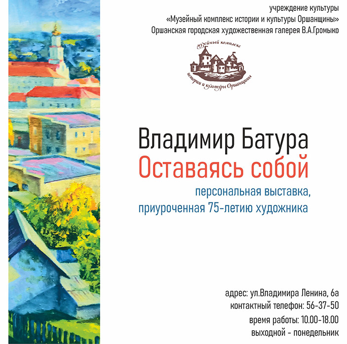 15 марта 2024 в Оршанской городской художественной галерее В.А.Громыко начала работу персональная выставка Владимира Батуры «Оставаясь собой».