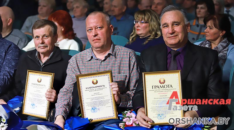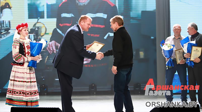 Лучшие работники предприятия были отмечены наградами в этот день на праздничной сцене Дворца культуры. Начальник управления сельскохозяйственного машиностроения Министерства промышленности Республики Беларусь Андрей Синило вручил грамоту Министерства промышленности Республики Беларусь резьбошлифовщику инструментального цеха № 31 Вячеславу Козлову. Благодарностями Минпрома отмечены ведущий инженер-технолог отдела главного технолога Вадим Борисов и токарь инструментального цеха № 31 Сергей Калинин.