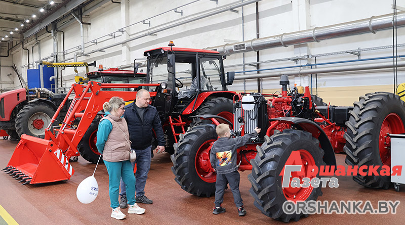 Кроме того, на территории предприятия была организована выставка техники, выпускаемой холдингом МТЗ. Можно было не только познакомиться с легендарными тракторами, но и посидеть в кабине, покрутить руль и сделать фото на память, чем с удовольствием и пользовались гости праздника.